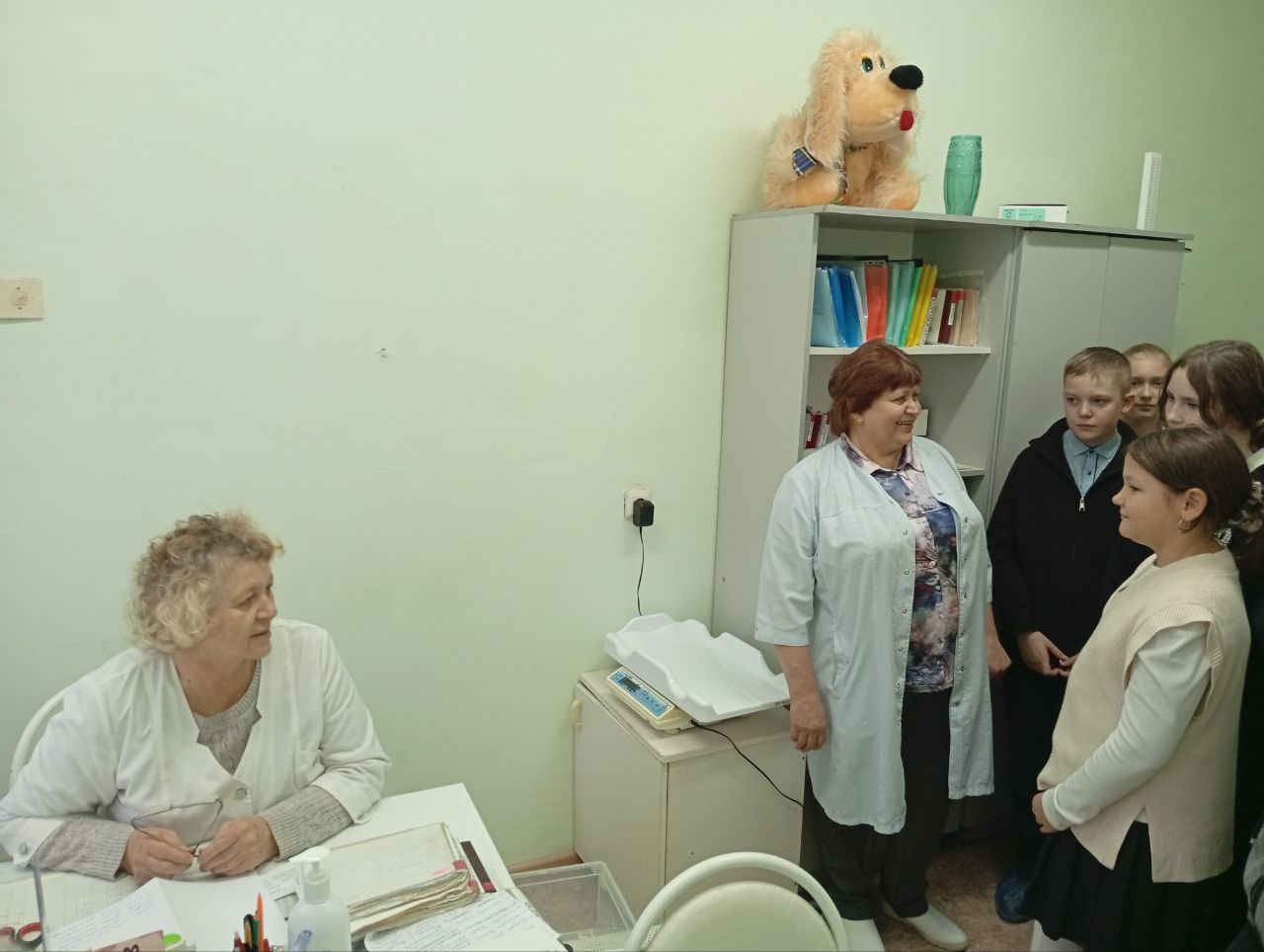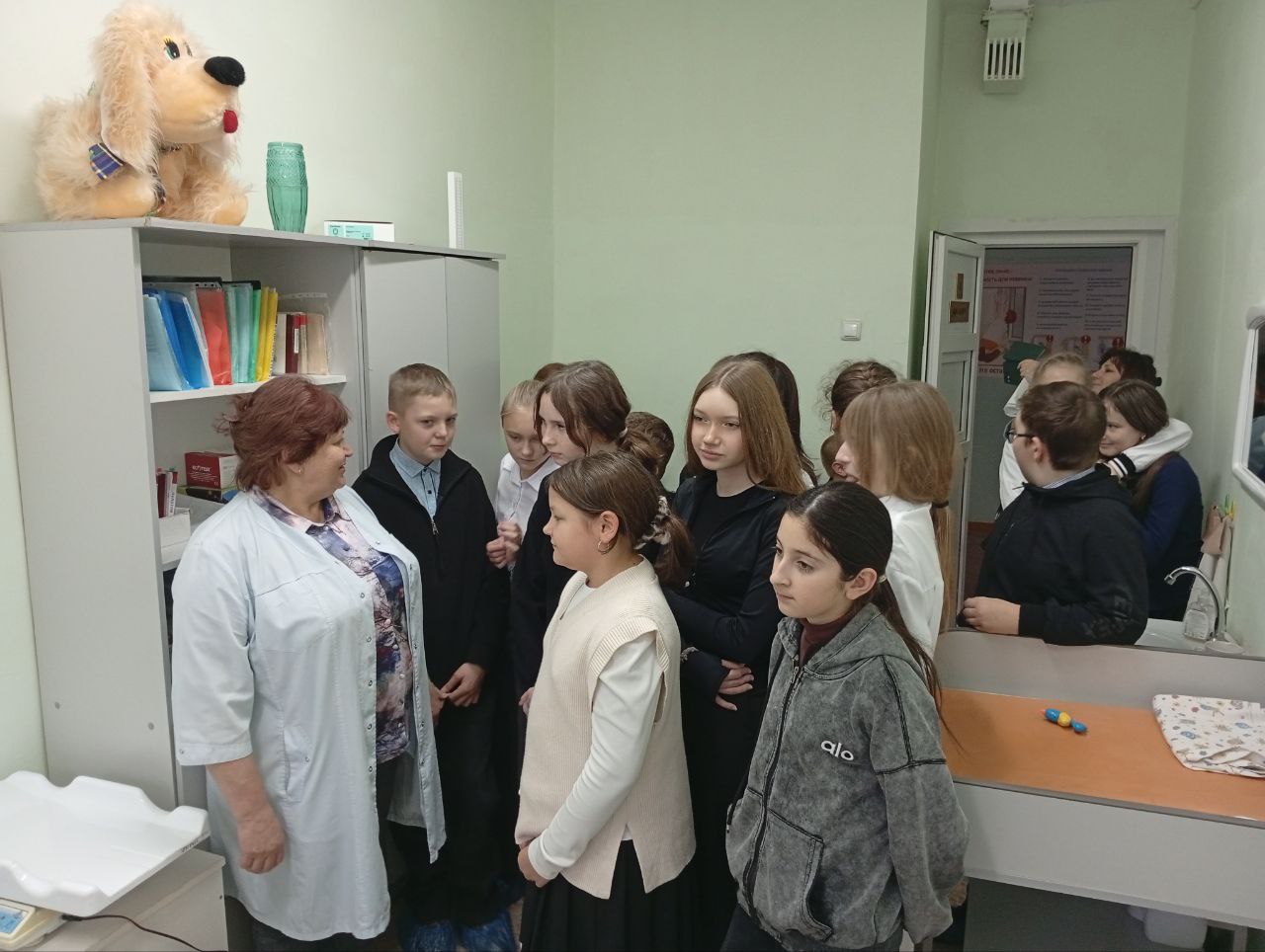 С самого начала ребят встретил приветливый персонал, который провел информативную презентацию о работе поликлиники, рассказали о разных специальностях врачей, о том, какие услуги доступны для нас, и о том, как правильно заботиться о нашем здоровье.