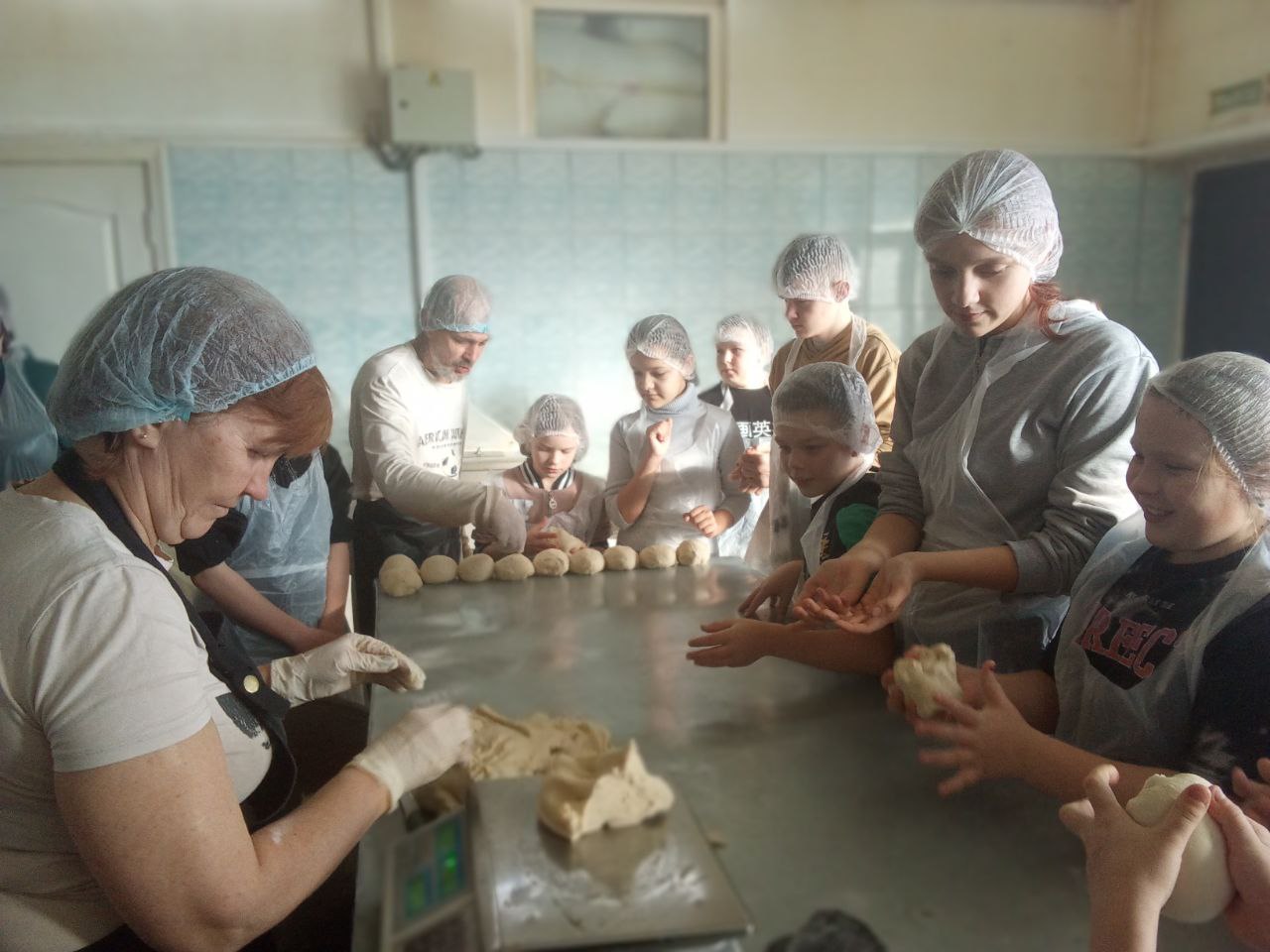 Участники экскурсии приняли участие в увлекательном мастер-классе, в ходе которого самостоятельно вылепили из теста заготовки для батонов. Каждый в подарок за участие в мастер-классе получил ароматную булочку.