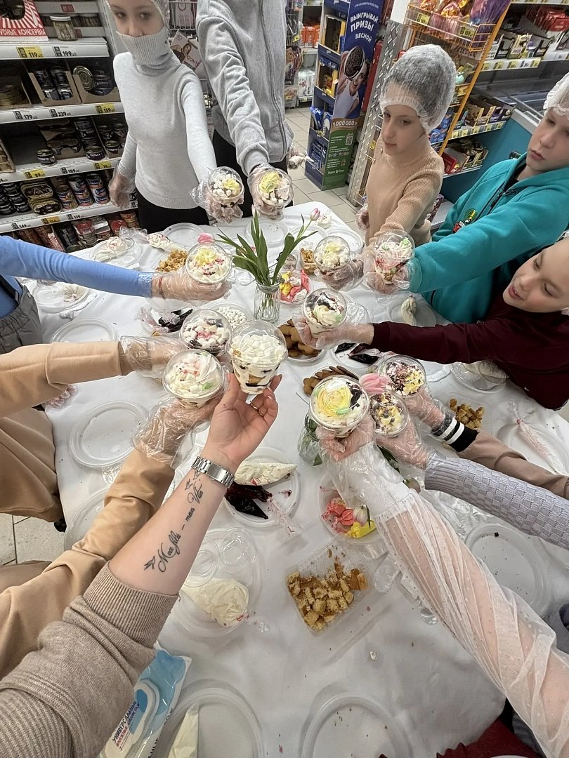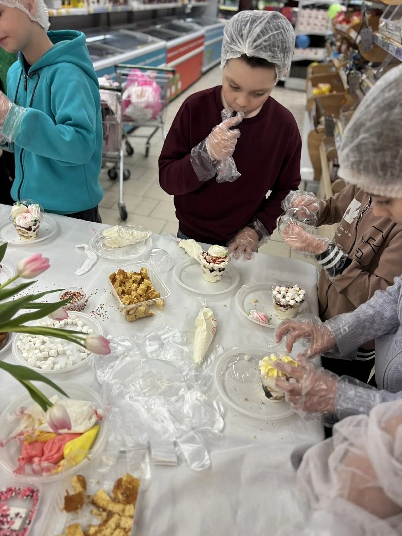 Каждый ребенок создавал свой уникальный десерт, добавляя в него свой любимый ингредиент.