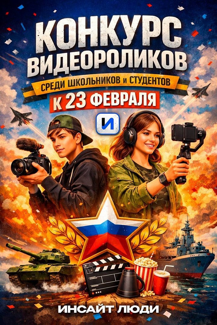 «Инсайт Люди» запускают онлайн-конкурс видеороликов к Дню защитника Отечества для школьников и студентов. Здесь можно проявить себя как блогер, актёр, режиссёр, сценарист или контентмейкер.