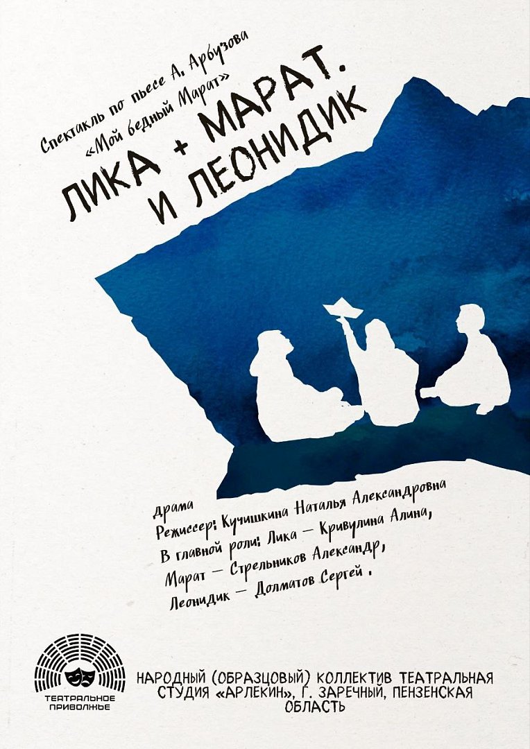 Аникина Варвара – 12 лет – Школа креативных индустрий г. Саратов - афиша к спектаклю театральной студии «Арлекин», г. Заречный Пензенской области «Лика + Марат. И Леонидик» по пьесе А. Арбузова «Мой бедный Марат»;