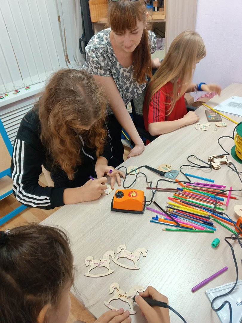 «Пирография» (рисование огнем) – это увлекательная техника, сегодня доступная практически всем, кто желает ее освоить. Для начала нужно было помочь ребятам овладеть основами техники выжигания, научить их соблюдать правила и требования техники безопасности, развить интерес к изучению искусства выжигания, сформировать способности к самостоятельной работе с выжигательным прибором», — рассказала руководитель модуля.