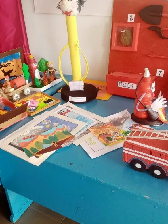 Работы выполнены в виде рисунков, макетов пожарной техники, видеофильмов и презентаций, поделок из пластилина, выжигания, вышивания, аппликаций, стихов и рассказов собственного сочинения, кроссвордов и методических разработок.