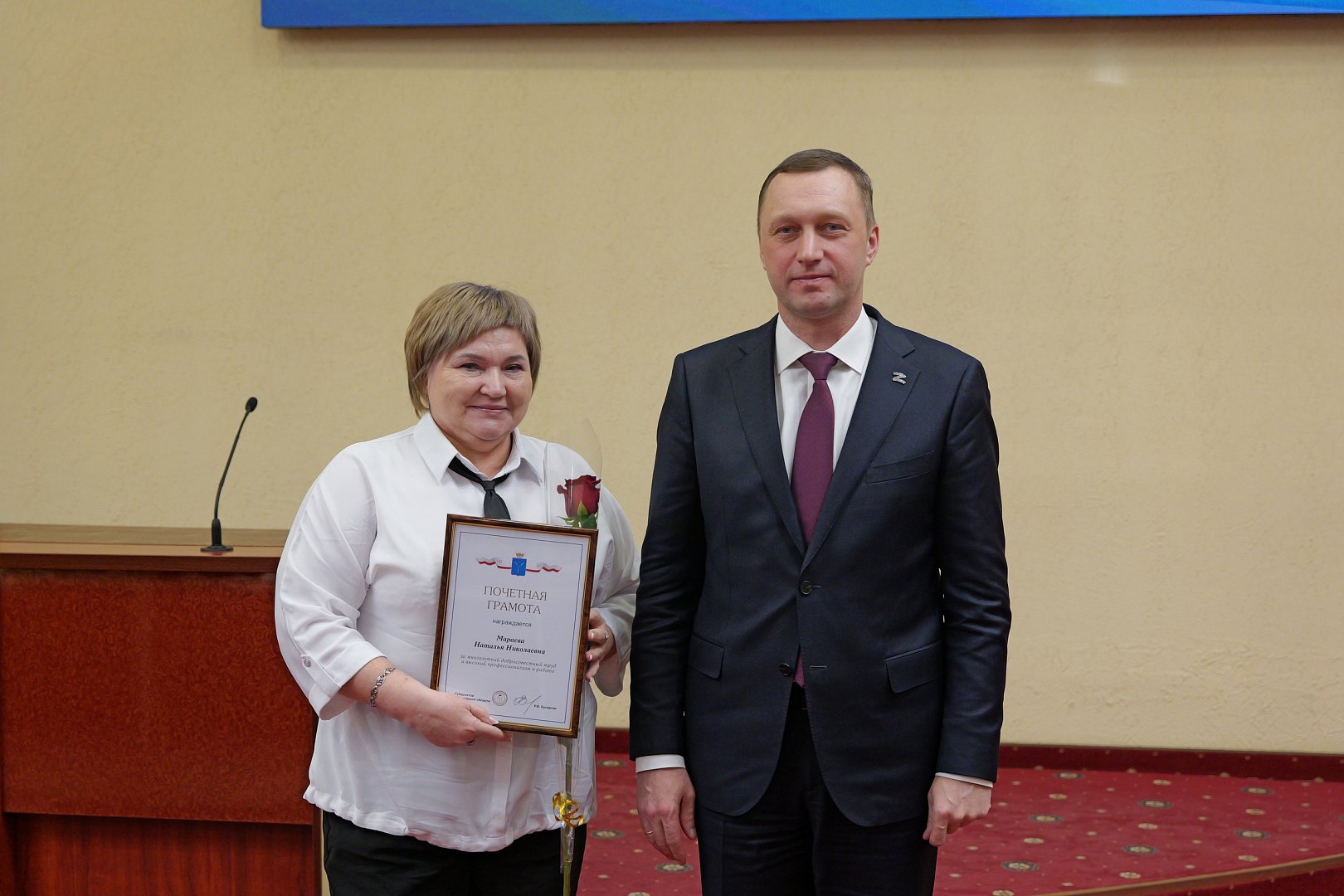 В торжественной обстановке директор Новобурасского центра социального обслуживания населения Наталья Николаевна Мараева была награждена почётной грамотой губернатора Саратовской области за многолетний добросовестный труд и высокий профессионализм в работе.