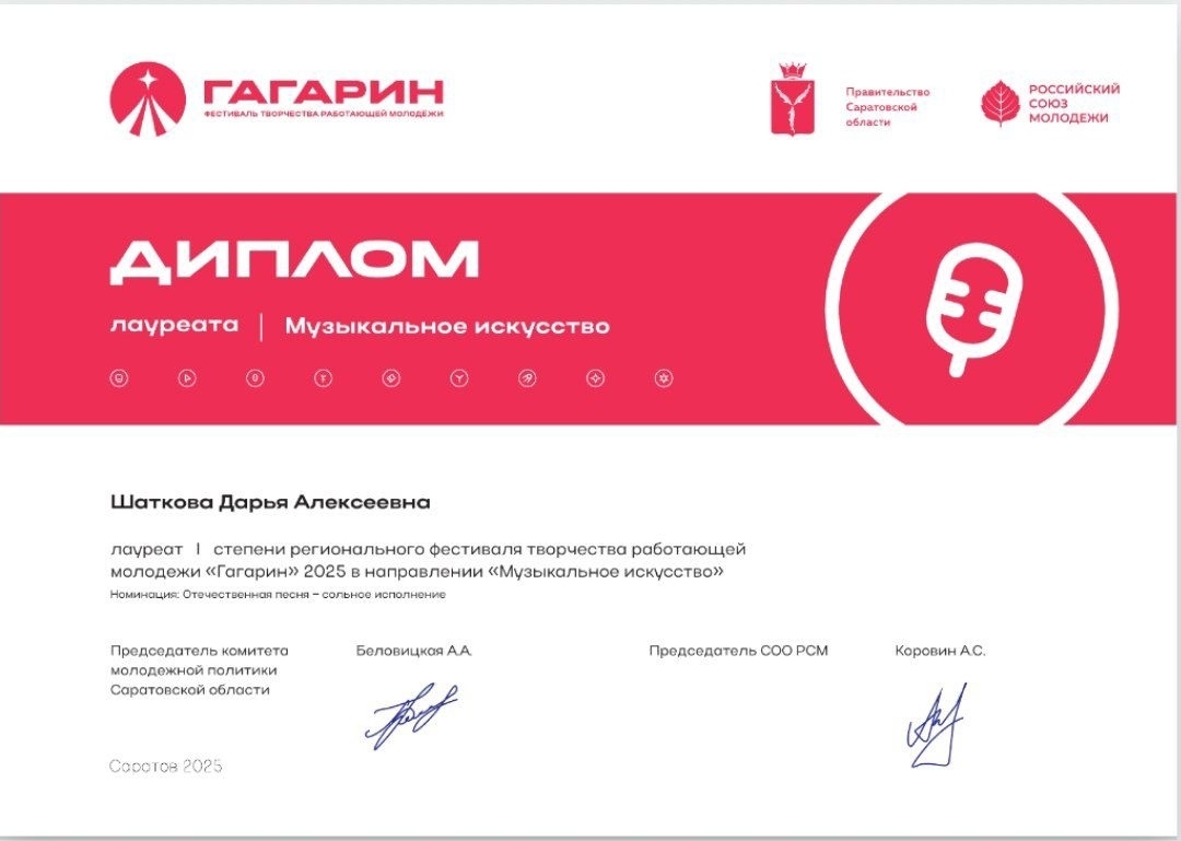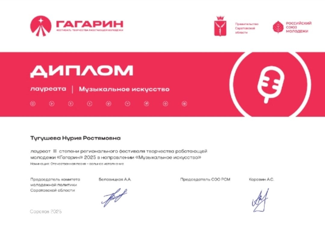 Представители Новобурасского района удостоены звания лауреатов регионального фестиваля творчества работающей молодёжи "Гагарин" - 2025