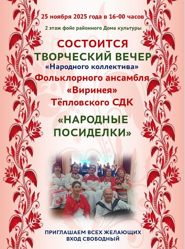Мы рады пригласить вас на творческий вечер фольклорного ансамбля "Виринея".