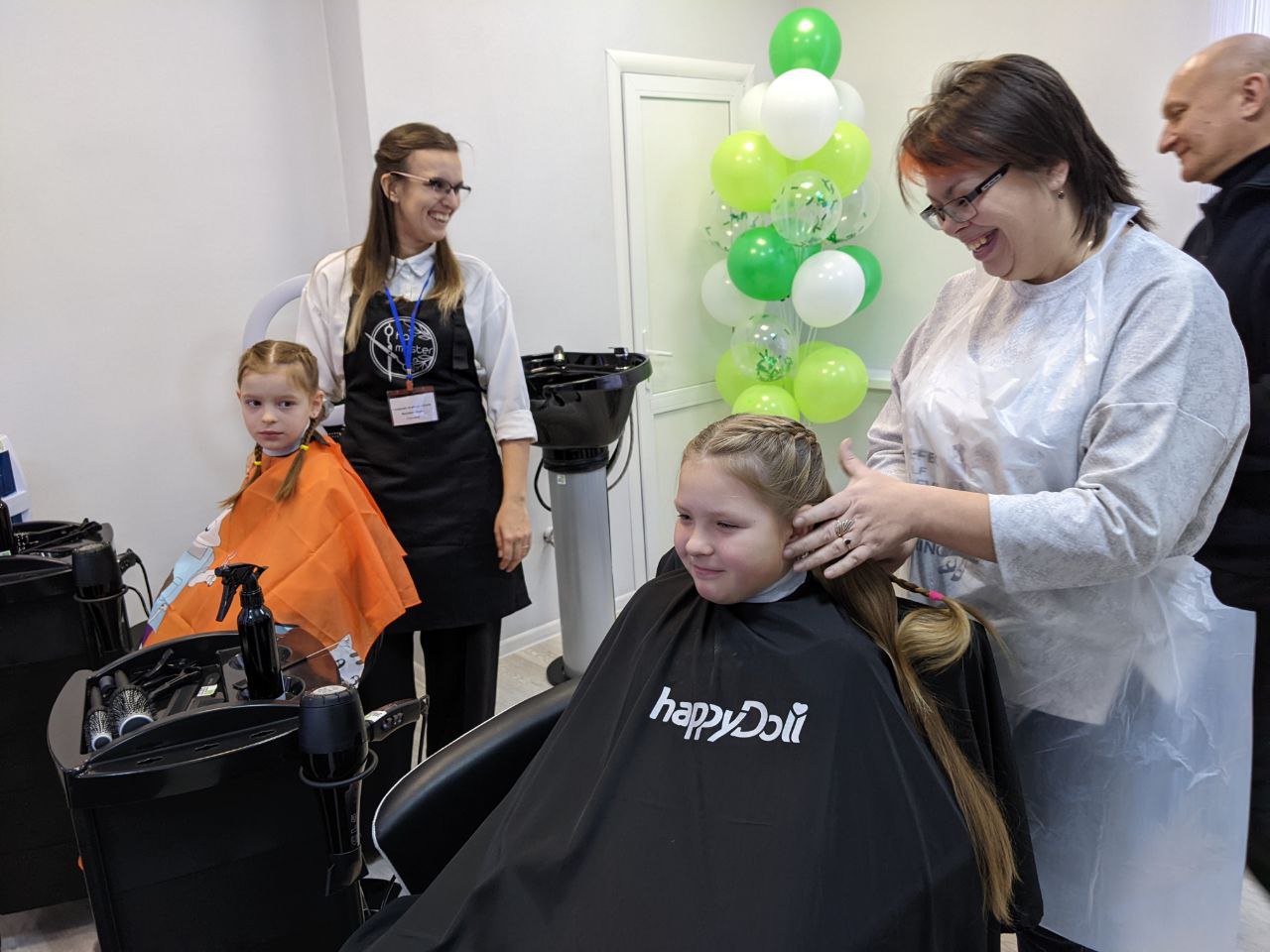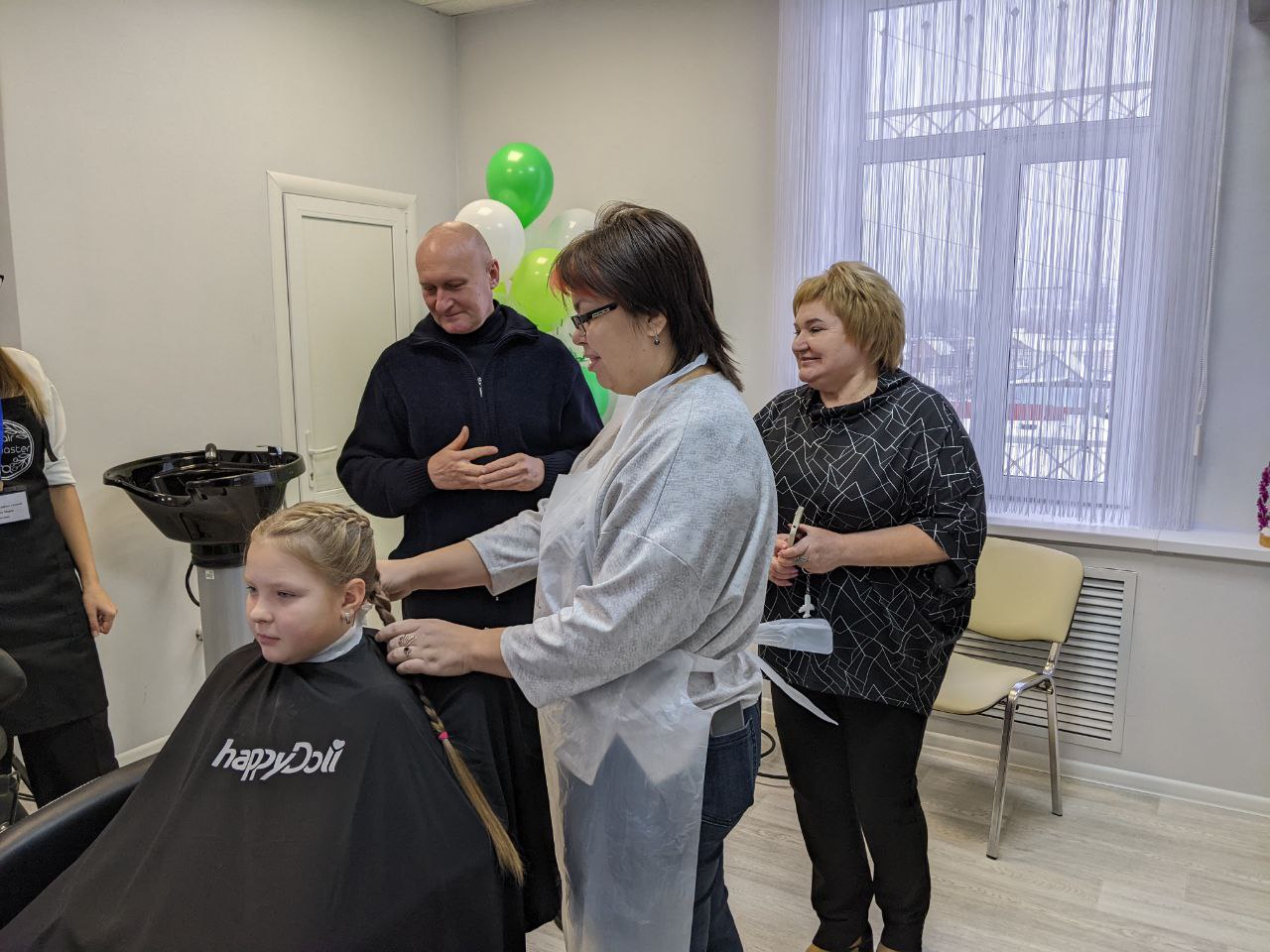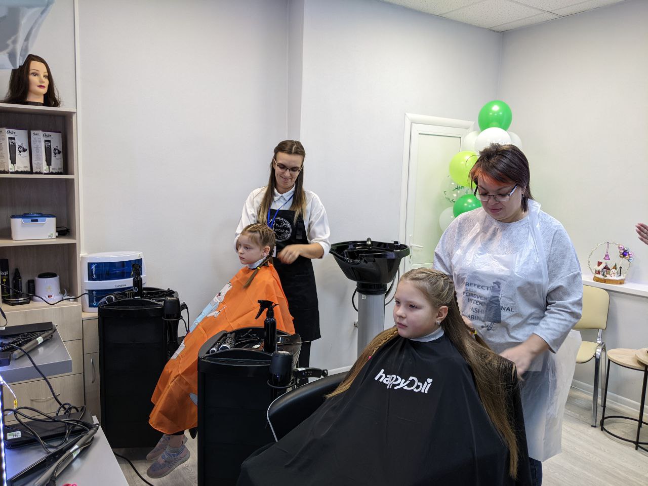 С удивлением и восторгом гости остались после посещения занятия в парикмахерской лаборатории «Мастер стиля», на котором сотрудник центра показывала маме, участнице проекта, способы плетения косы для девочки.