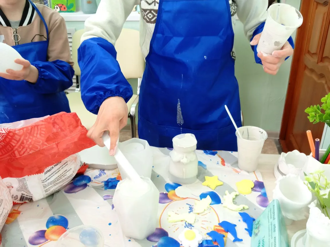 Участники проекта "Семейная мастерская" модуля "Креатитвная лепка" на очередном занятии учились выливать фигурки из гипса, используя силиконовые формы и молды. Изделия из гипса набирают всё большую популярность. Гипс, благодаря своей текстуре, способен точно повторять все детали формы. Широко применяются интерьерные украшения и аксессуары из гипса. Вазы, статуэтки, шкатулки, подносы прекрасно впишутся в интерьер.