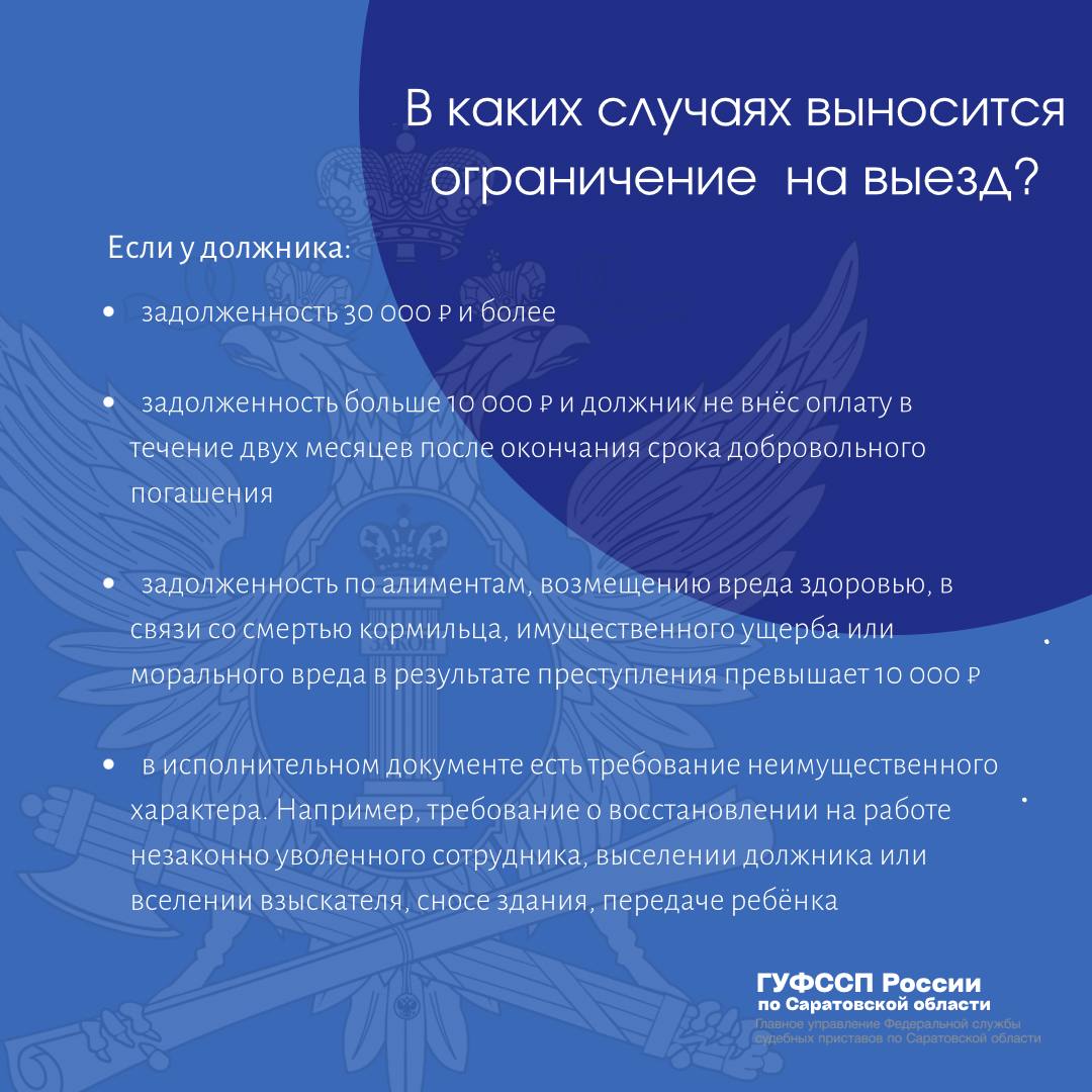 На сегодняшний день в отношении должников Саратовской области вынесено 138,7 тыс. постановлений о временном ограничении выезда из Российской Федерации. Отмена этого ограничения возможна только после полного погашения задолженности.