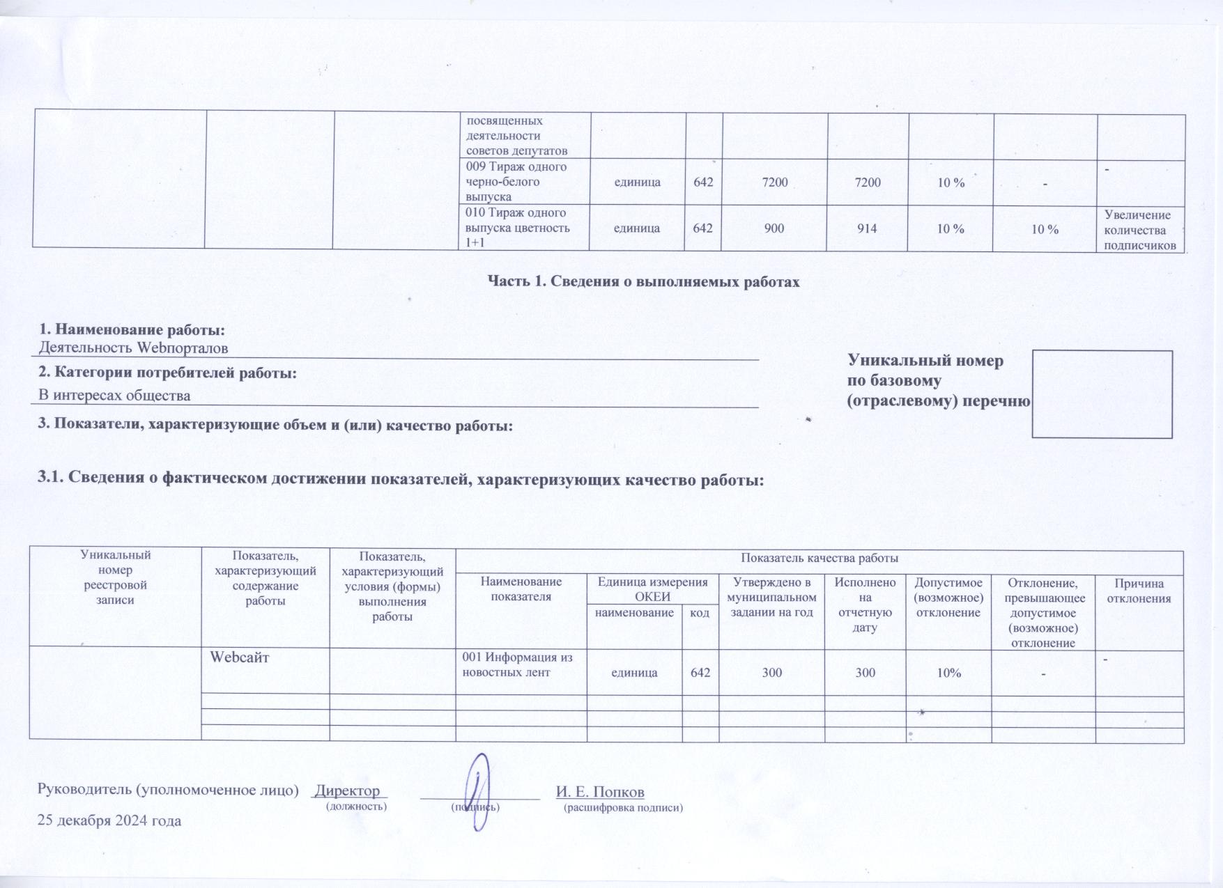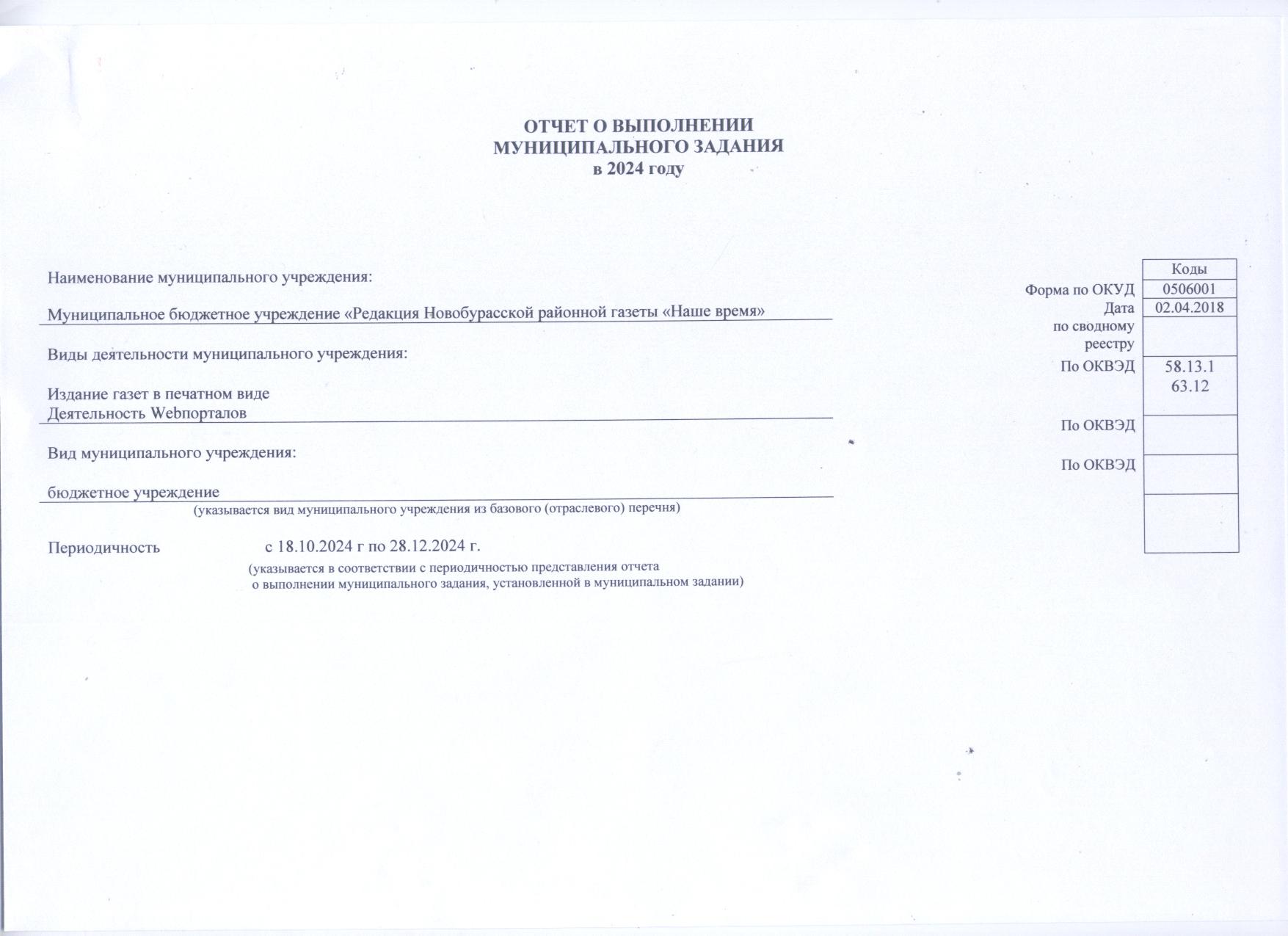 Отчет о выполнении муниципального задания в 2024 году