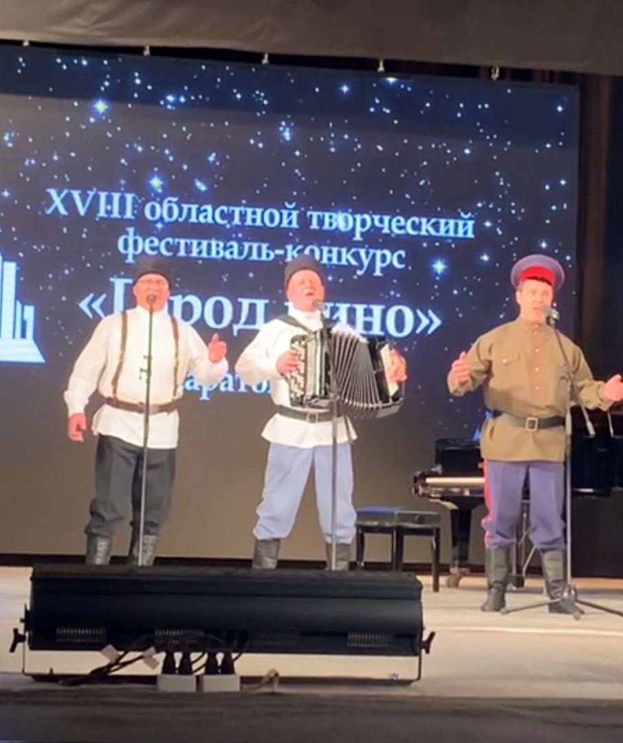Особенным этот вечер сделало выступление гостей из Новых Бурас. На сцену вместе со специалистом кинозала «Заря» поднялся народный коллектив — ансамбль народной песни «Россияне». И зал затих, услышав первые, будто из самой глубины веков, звуки старинной казачьей песни «Лети, пташка, канарейка».