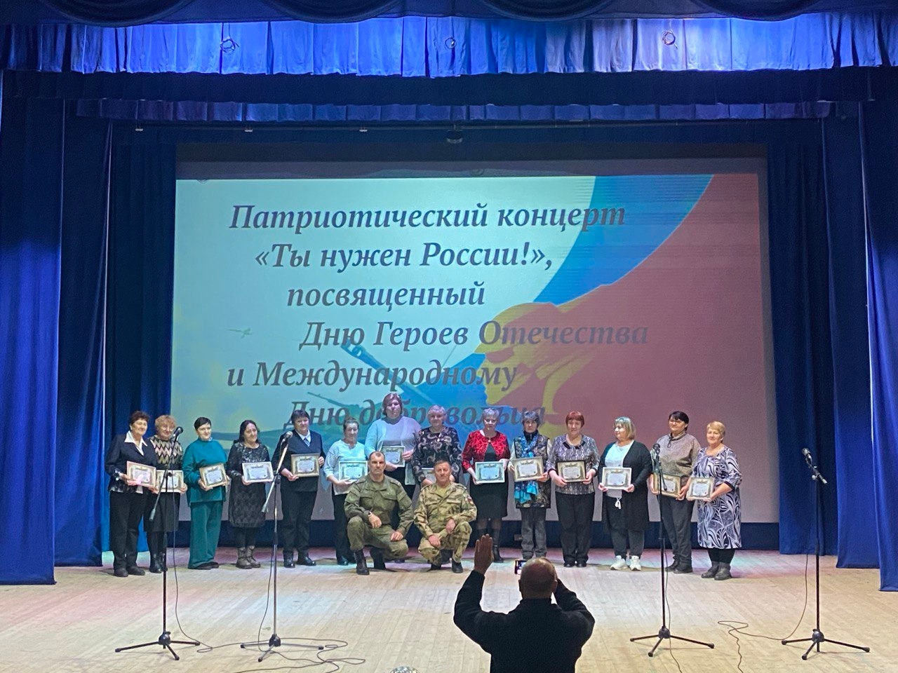 9 декабря 2025 года в районном Доме культуры состоялся патриотический концерт «Ты нужен России!», посвященный Дню героев Отечества и Международному дню добровольца (волонтёра).